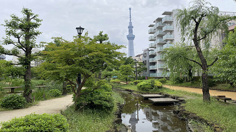 大横川親水公園で緑を感じながらスカイツリーを目指す